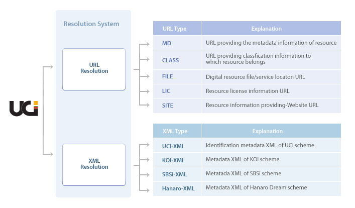 UCI resolution system provides multiple URLs or metadata resolution on the input of one UCI, which is called multiple resolutions. Through such UCI multiple resolutions, a user can optionally use various resource information connected to UCI.