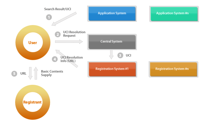 - The central system requests concerned resolution Info to the appropriate registration system by analyzing prefix code of UCI.